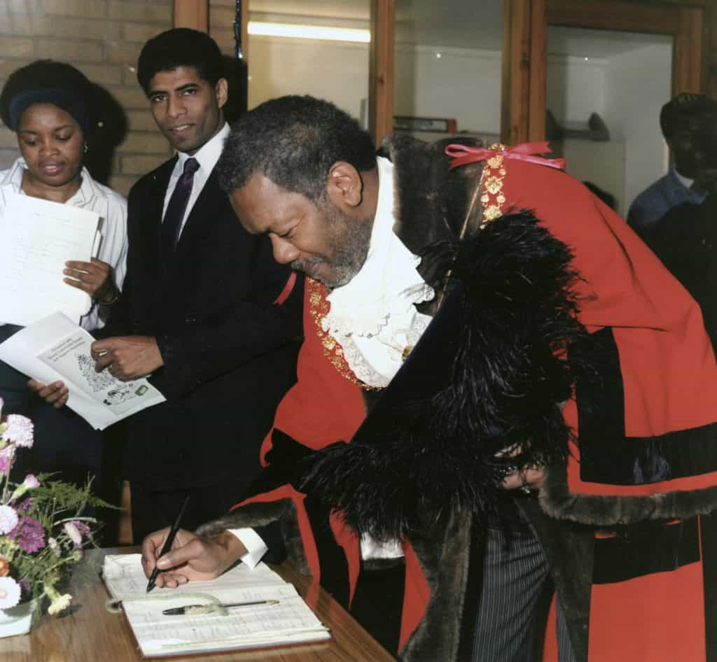 His commitment to equality led naturally into public life. He served as Financial Secretary of the Transport and General Workers’ Union, played a key role in securing funding for the Malcolm X Centre, and was elected as a Labour councillor for Ashley ward in 1987. He later became a Justice of the Peace and Chair of the Race Equality Committee before making history in 1990 as Lord Mayor of Bristol.